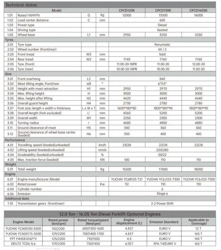 K Series 12.0-16.0S Ton Diesel Forklift CPCD120K– Heavy-Duty Internal Combustion Forklift for Industrial Material Handling