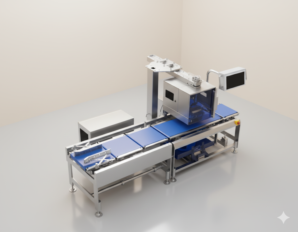 This weigh and price labeling machine combines the process of weighing and price labeling on the packages.